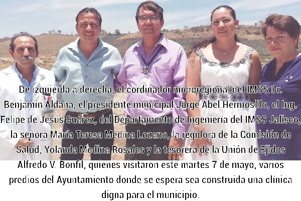 Sin embargo, también se efectuó un recorrido por predios donde es casi un hecho se edificará una clínica de primer nivel del IMSS con instalaciones y servicios dignos para los más de 20 mil derechohabientes y inscritos a la clínica local desde hace lustros sin que haya tenido mejoras.