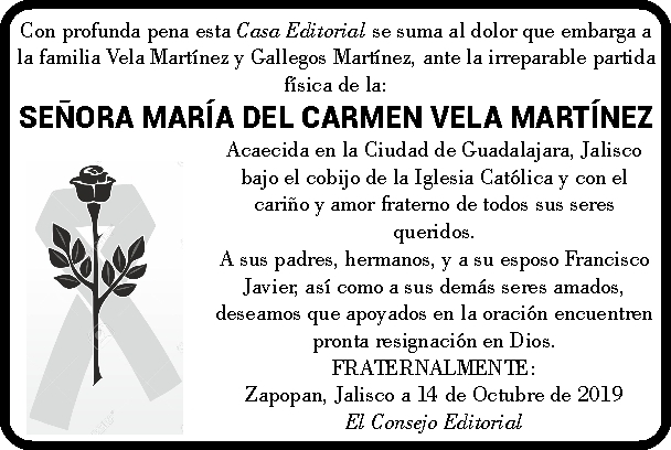 Sincero pésame a la familia Vela Martínez
